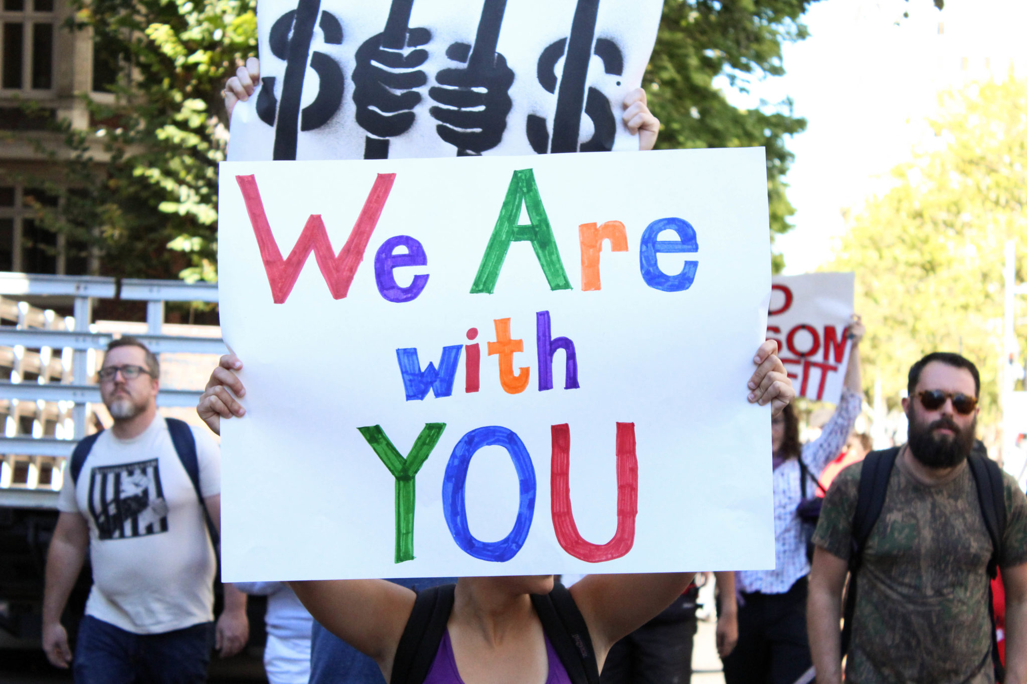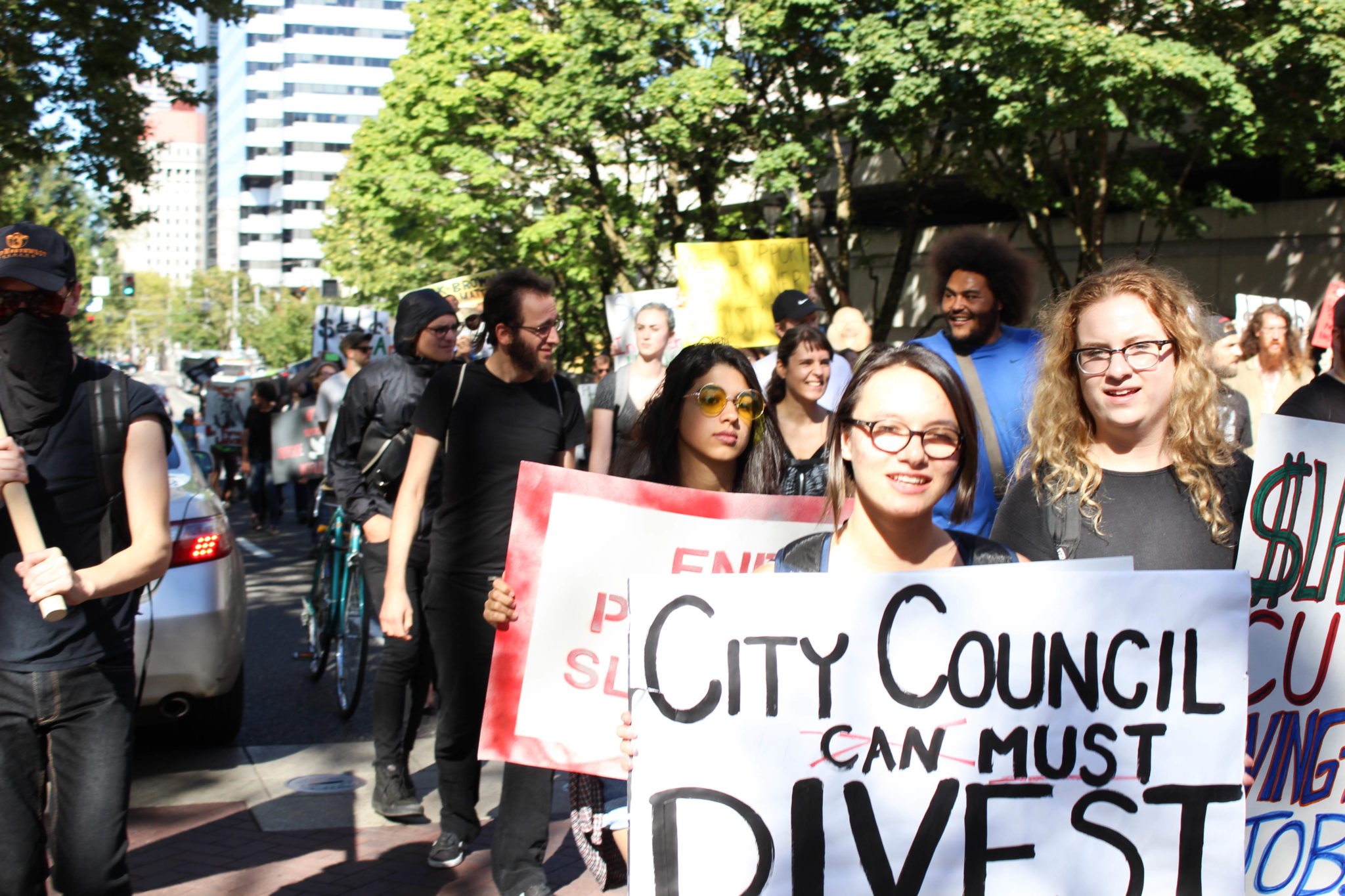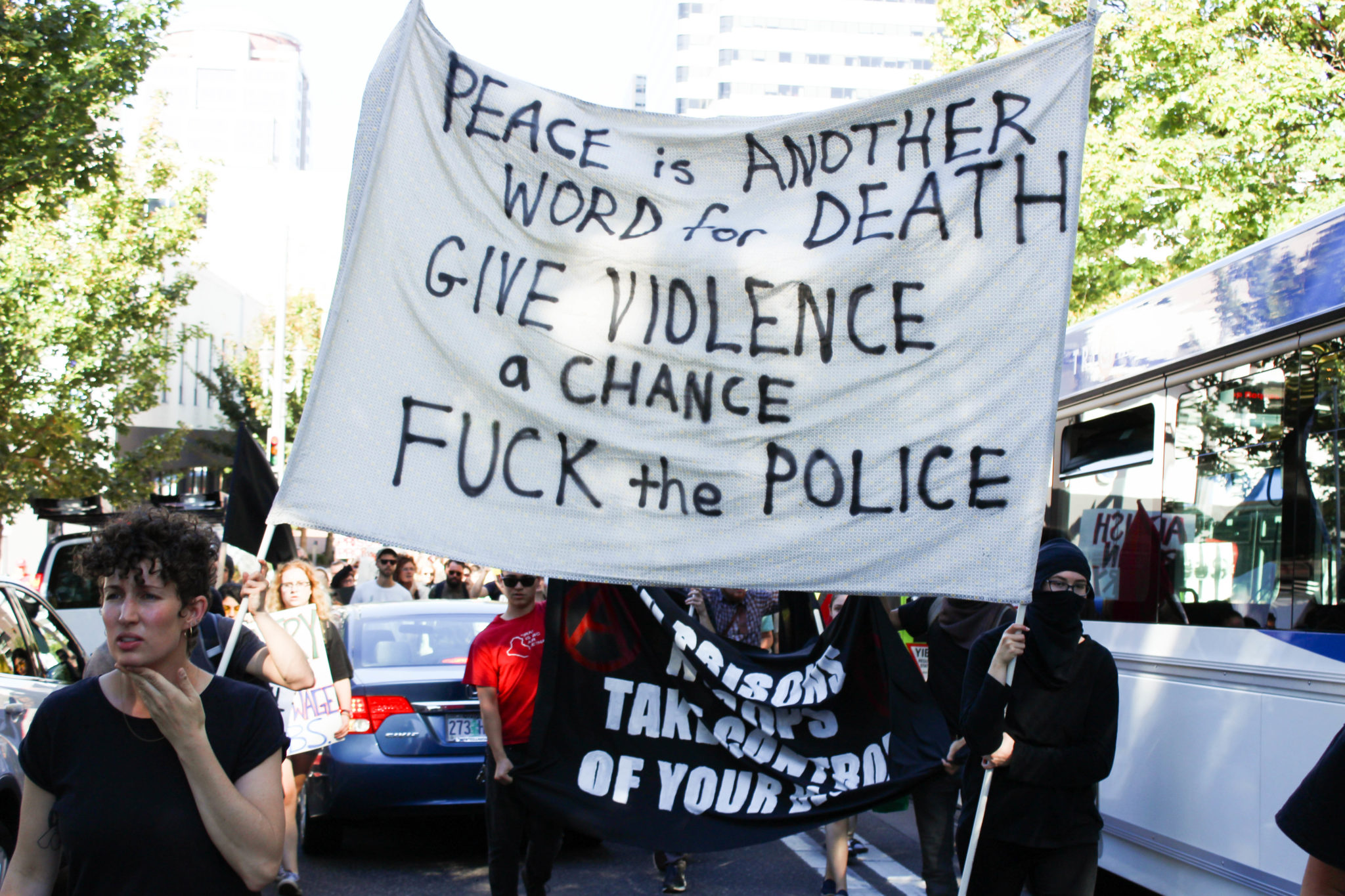 On the 45th anniversary of the Attica uprising, inmates at facilities in 23 states went on strike, refusing to go to work or engaging in slowdowns/stoppages. Locally, hundreds of protesters came to Chapman Square in the heart of downtown Portland to string together the issues of private prisons, commercial exploitation, white supremacy and mass incarceration. Groups like the Marilyn Buck Abolition Collective and Black Lives Matter PDX discussed the racial nature of the prison system, while Anarchist Black Cross honed in on key issues like working conditions, access to healthcare, and physical abuse that prisoners regularly face.